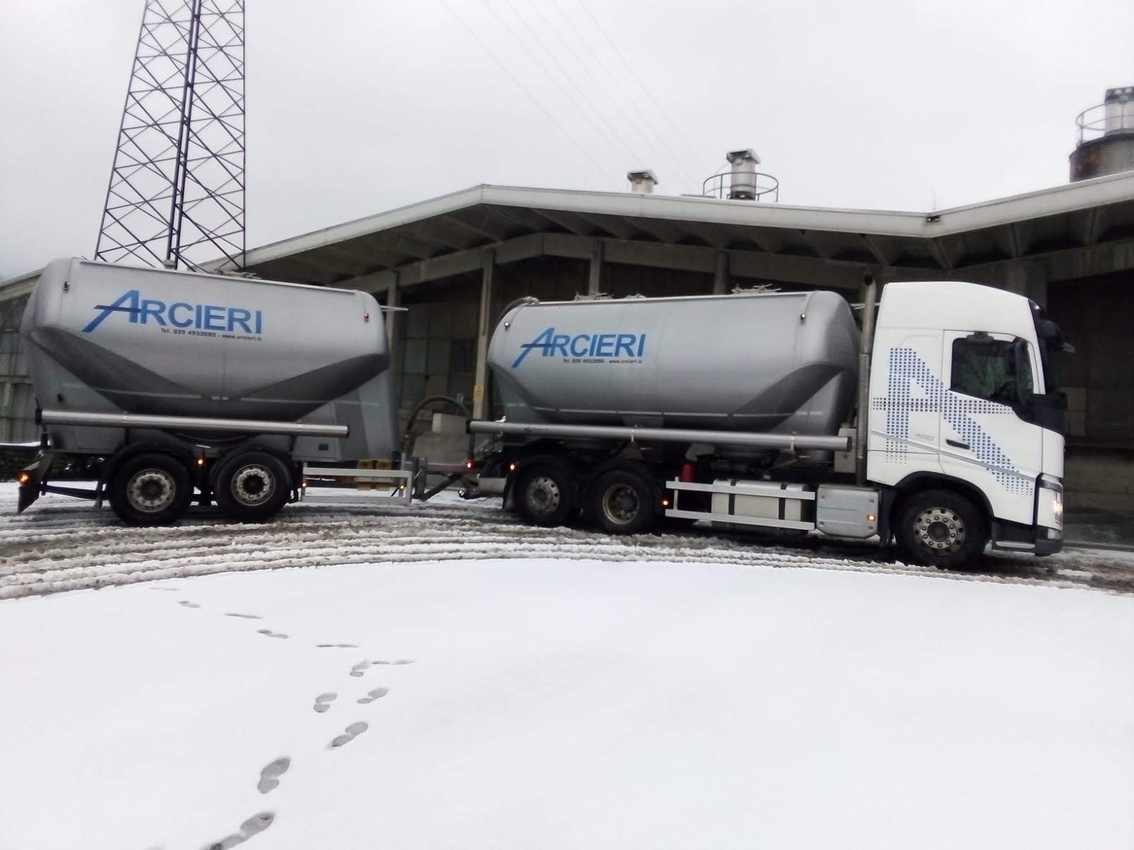 Attiva in tutto il Nord Italia con consegne anche in Svizzera e in Francia, la ditta Trasporti e Spedizioni Arcieri di Medolago, in provincia di Bergamo, può essere considerata tra le realtà aziendali più dinamiche e meglio preparate nel campo del trasporto dei materiali sfusi polverulenti: sempre disponibile a offrirvi la soluzione ideale per ogni vostra esigenza, l'azienda è un vero e proprio punto di riferimento per tutte le imprese del territorio per il trasporto di materiali come perlite, cementi, intonaci premiscelati, sabbie e similari. Per ogni spedizione e consegna, utilizziamo esclusivamente mezzi e strumentazioni all'avanguardia, come bilici, autotreni, autosilos e motrici tecnologicamente avanzati.